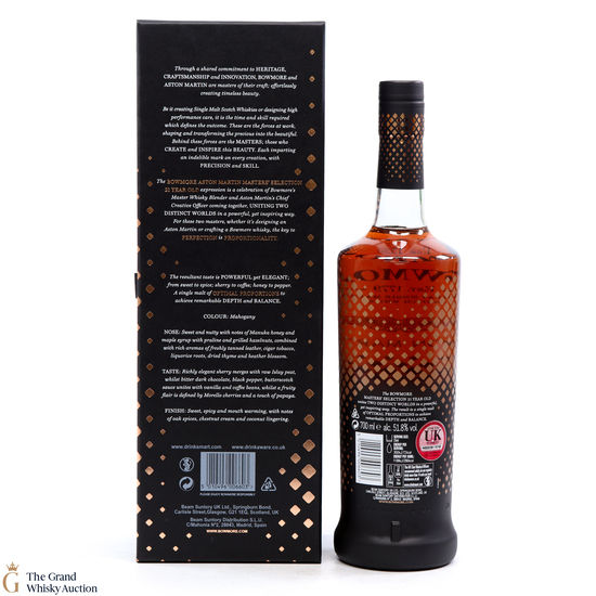 This 21-Year-Old Bowmore is a limited-edition single malt created in collaboration between Ron Welsh, Bowmore Master Blender and Marek Reichman, Aston Martin Chief Creative Officer. Matured in a combination of oloroso and Pedro Ximenez sherry casks. The result is a single malt that thrills all the senses for optimal enjoyment.