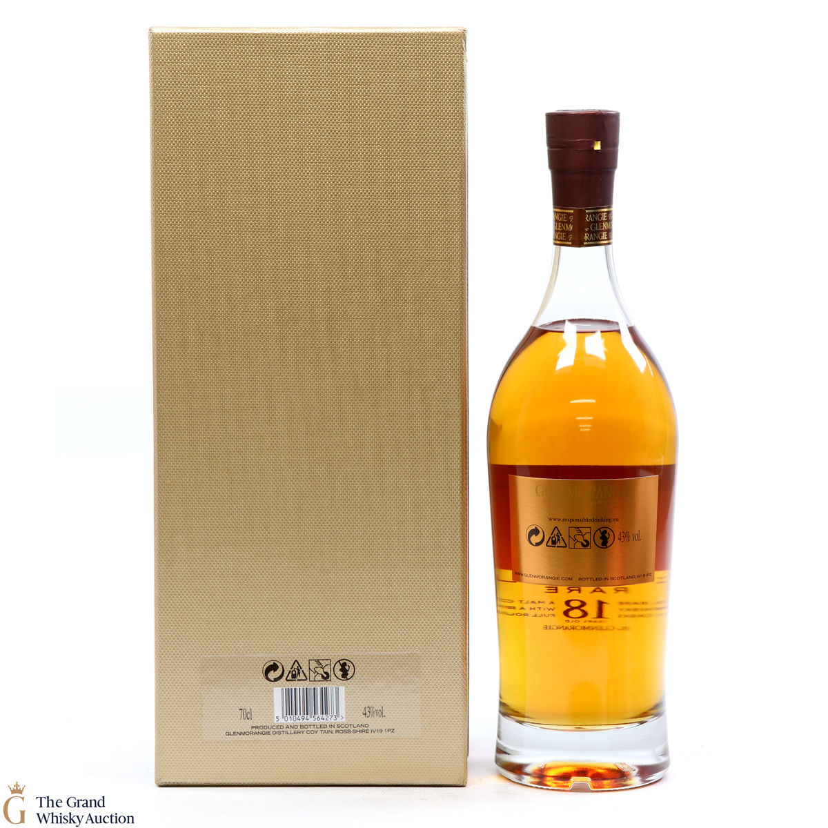 This bottle is an 18-year-old Extremely Rare, Highland single malt produced by Glenmorangie. It has been perfected by the sixteen men of Tain who have specially aged this bottle for 18 years in superior oak casks.
