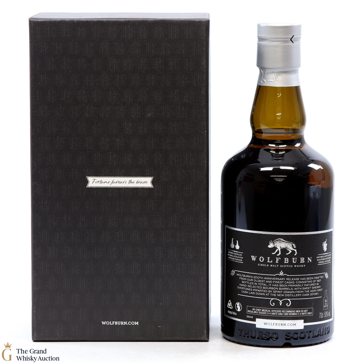 Due to the various ages of bottles and their seals, the condition of liquid is at the buyer's discretion and no claim can be lodged against failure/leakage in transit. Loss and breakage cover is available at 3% of the hammer price as standard. If the lot is not insured, no claim can be lodged against the courier or The Grand Whisky Auction for breakage or loss in transit.
