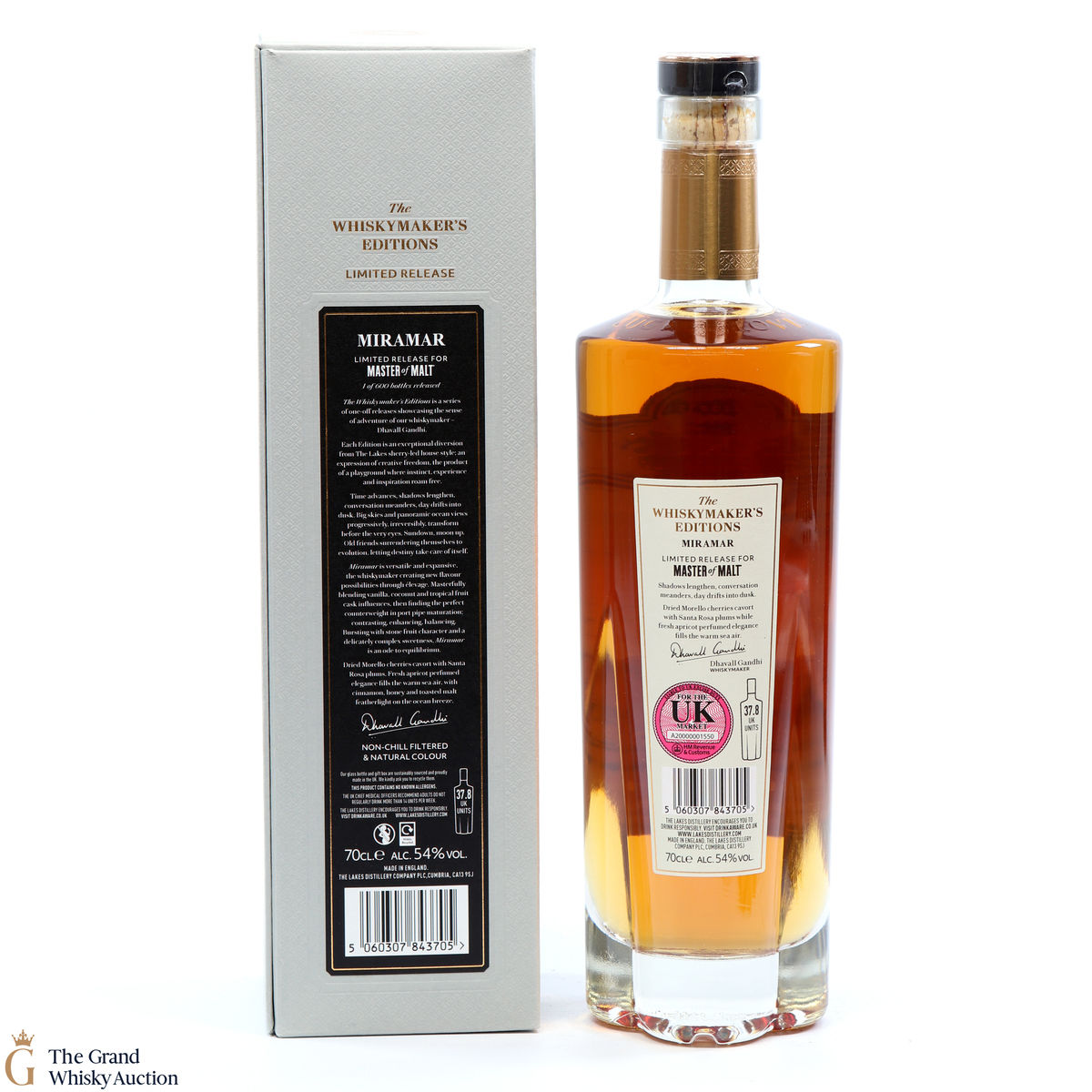 Distilled at The Lakes Distillery, this single malt is an exceptional diversion from the distillery's sherry house style. Given the title Miramar, this is part of The Whiskymaker's Editions and was bottled exclusively for Master of Malt.