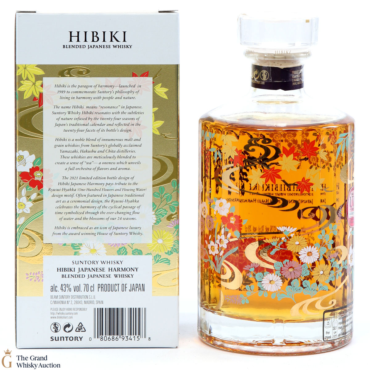 This is a limited edition, specially designed bottle with painted flowers and flowing ribbons of water. The 2021 special edition pays homage to the Ryisui-Hyakka (One Hundred Flowers and Flowing Water) and celebrates different seasonal flowers which help characterise the Japanese seasons. 5 types of casks were used and in typical Hibiki fashion, the bottle always has 24 facets which represent 24 seasons in the Japanese lunar calendar.