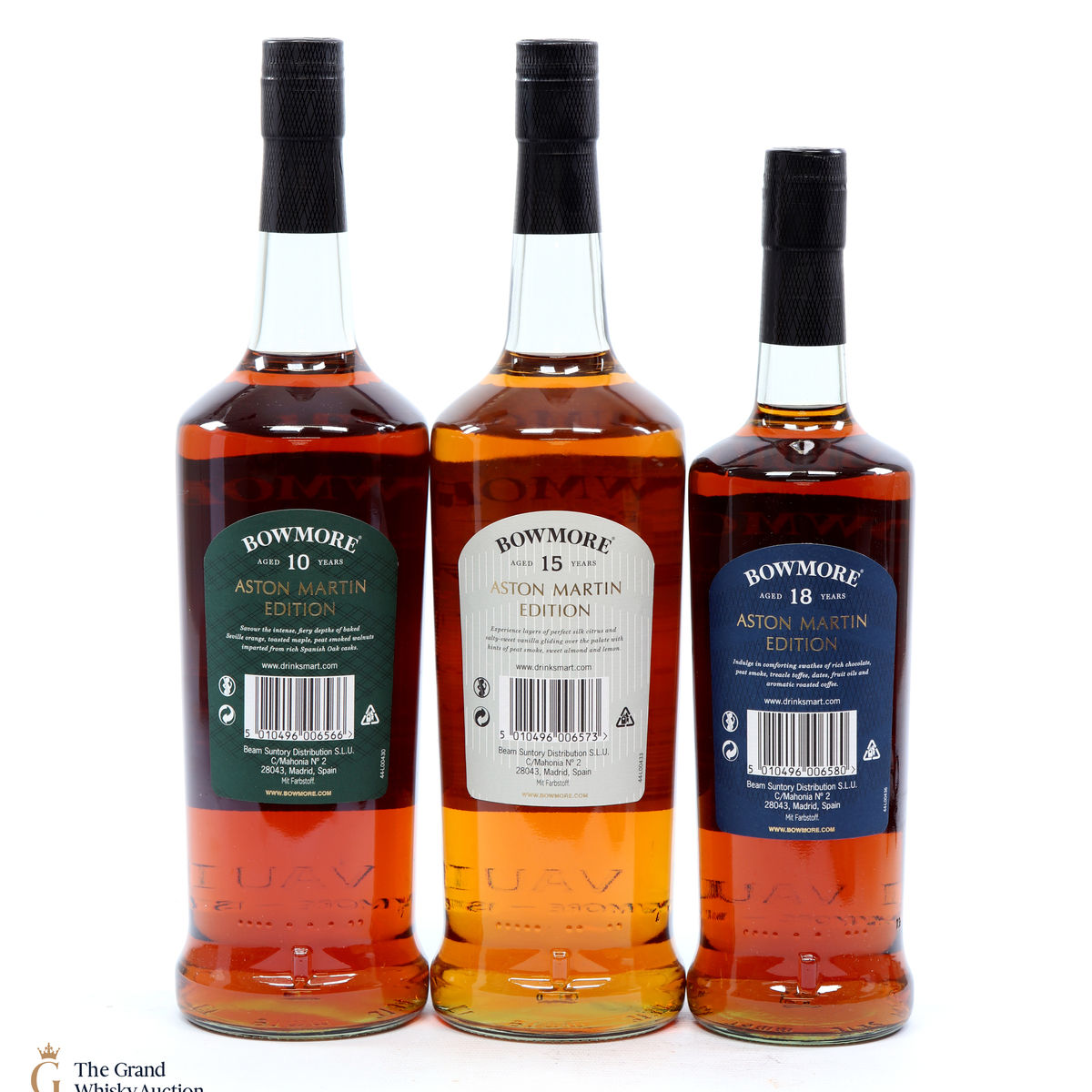 The full collection of the collaboration between Bowmore and Aston Martin, both creating timeless beauty and a lasting legacy. Each edition of the Aston Martin collection features a different car. Included in this lot is edition 1, 2 and 3: