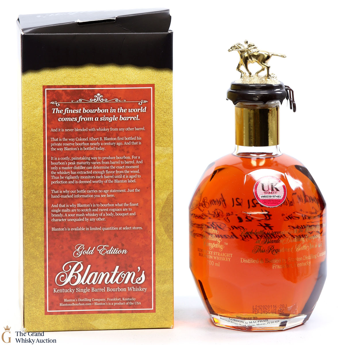 Due to the various ages of bottles and their seals, the condition of liquid is at the buyer's discretion and no claim can be lodged against failure/leakage in transit. Loss and breakage cover is available at 3% of the hammer price as standard. If the lot is not insured, no claim can be lodged against the courier or The Grand Whisky Auction for breakage or loss in transit.
