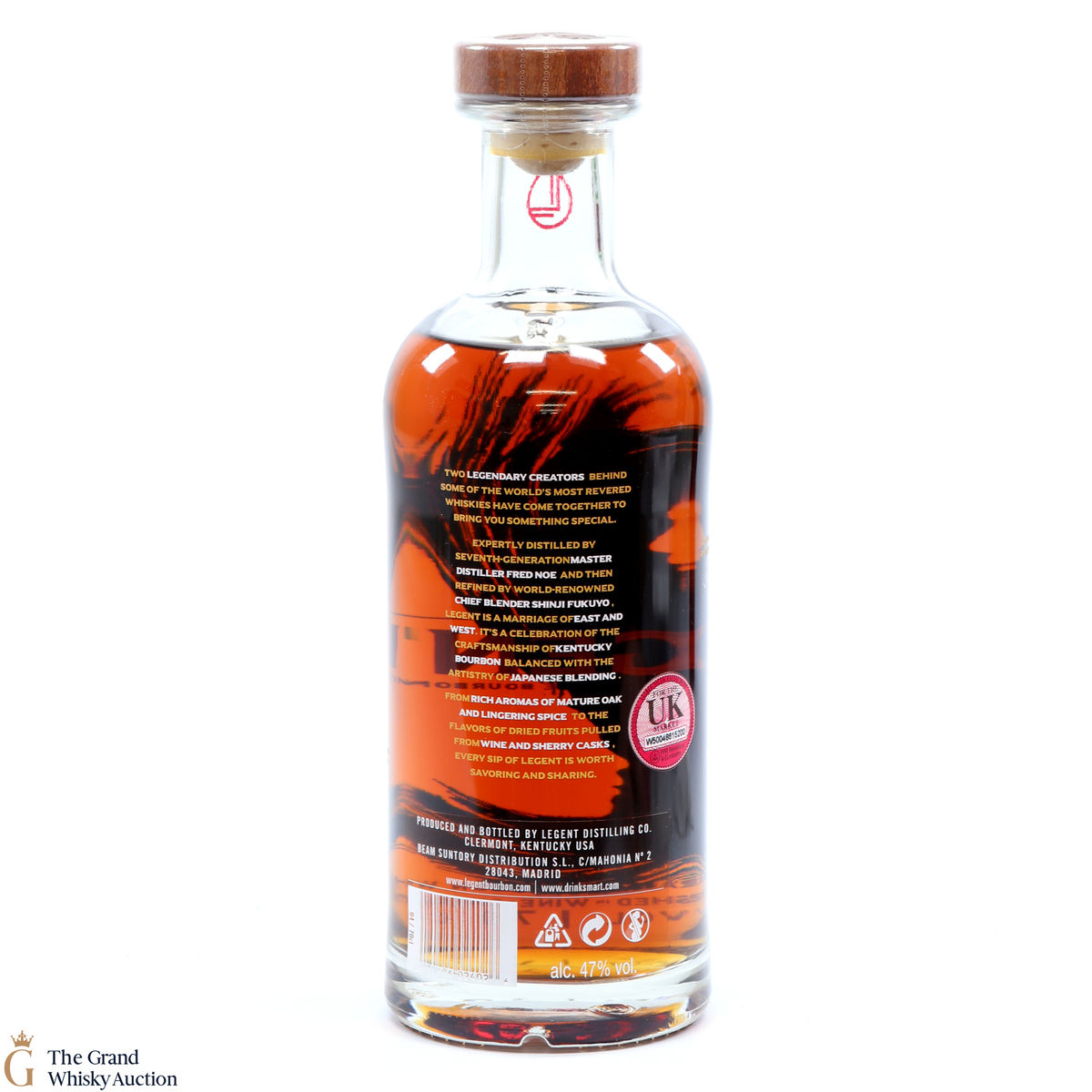 "Two legendary creators behind some of the world's most revered whiskies have come together to bring you something special. Expertly distilled by seventh-generation master distiller Fred Noe and then refined by world-renowned chief blender Shinji Fukuyo, Legent is a marriage of East and West".