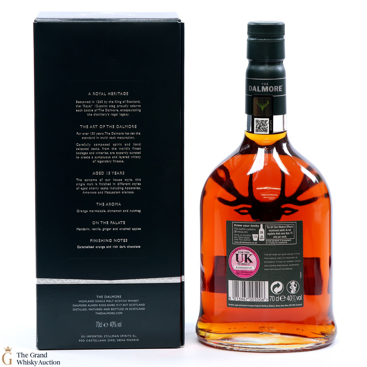 This Dalmore 15 year old was matured for 12 years in American white oak ex-bourbon casks and then a further maturation in three different sherry casks: Amoroso, Apostoles and Matusalem Oloroso.