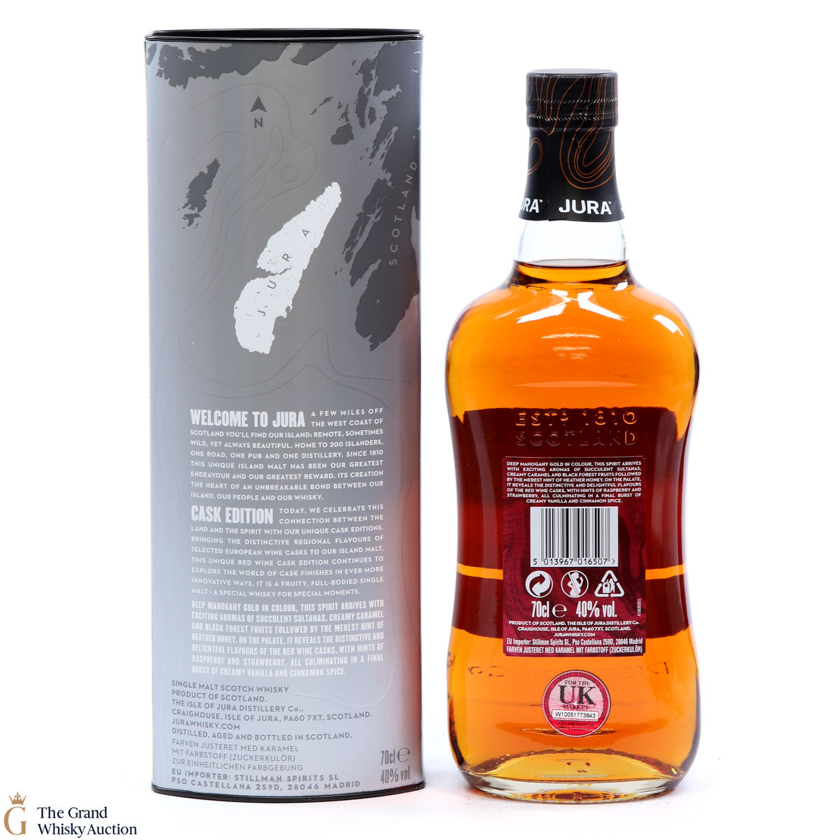 Jura Cask Editions celebrate flavours of selected European wine with the island malt and this unique red wine cask edition continues to explore the world of cask finishes in ever more innovative ways.