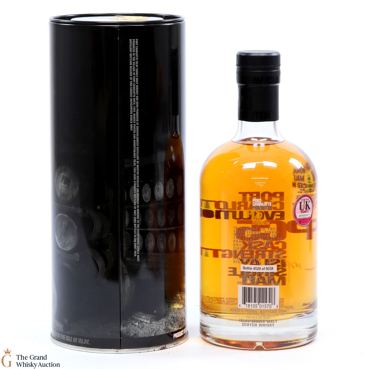 Port Charlotte PC5, produced by Bruichladdich Distillery, is a heavily peated spirit. It was the first release of heavily peated Port Charlotte and was produced in 2001 from some of the first spirits to be produced after the distillery's reopening. The single malt was bottled at 5 years old in 2006 and was limited to 6038 bottles.