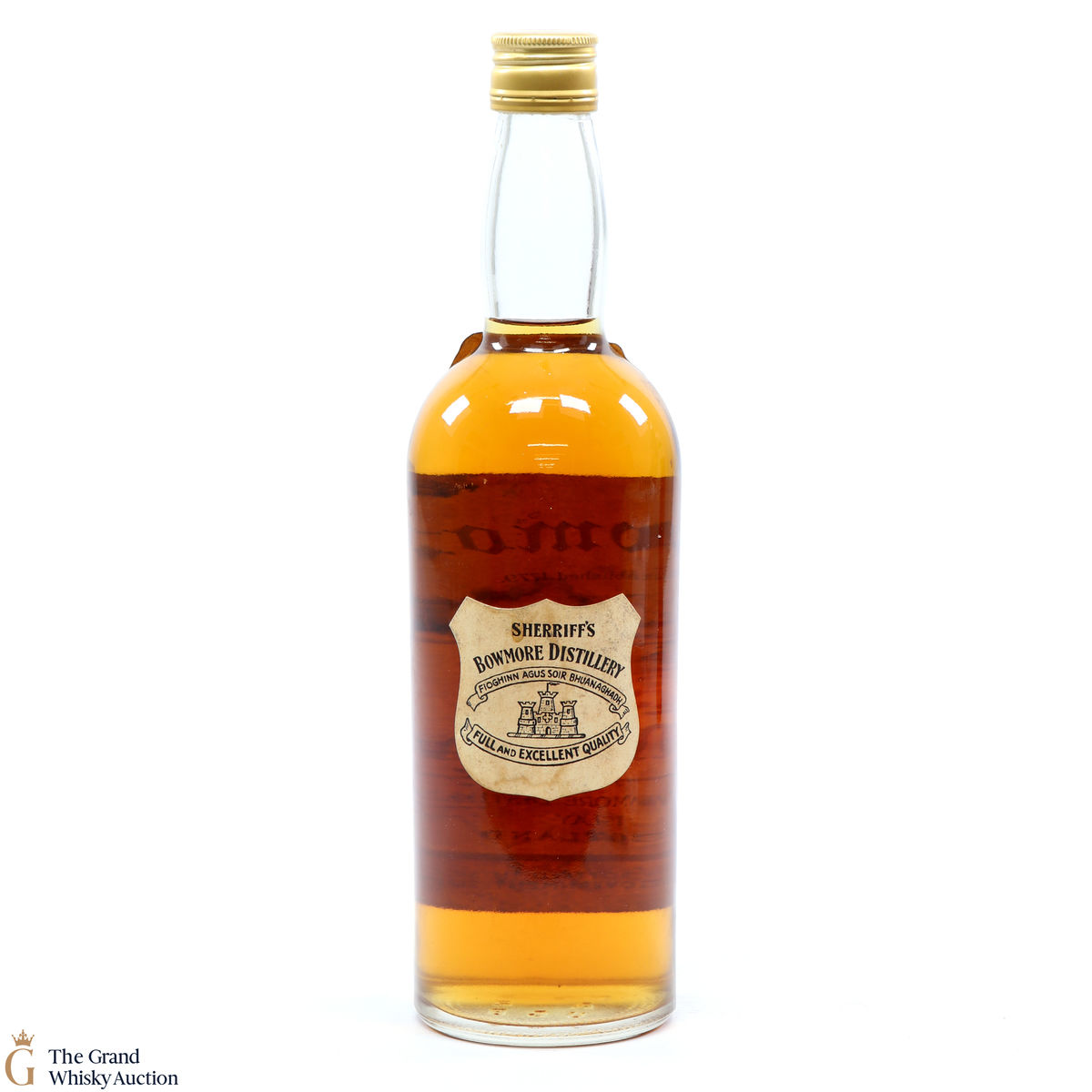 Very rare. This Sherriff's Bowmore Pure Islay Malt Whisky was released during the 1960s, before the distillery was bought by Stanley P Morrison in 1963.