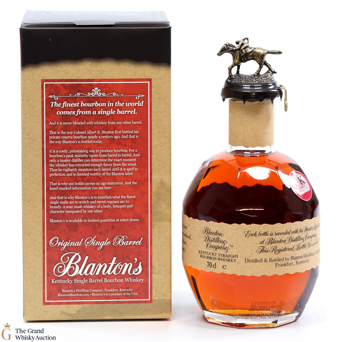 Blanton's Single Bourbon is normally 6 to 8-year-old bourbon, aged in Warehouse H at Buffalo Trace in the metal-clad warehouse at the distillery. The metal, transfers heat quicker than brick warehouses, allowing for faster ageing.