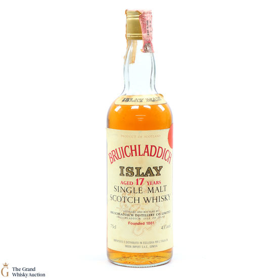 Distilled in 1964 on Islay, this legendary dram was aged for 17 years prior to being bottled. This bottle was imported by Moon for the Italian market.