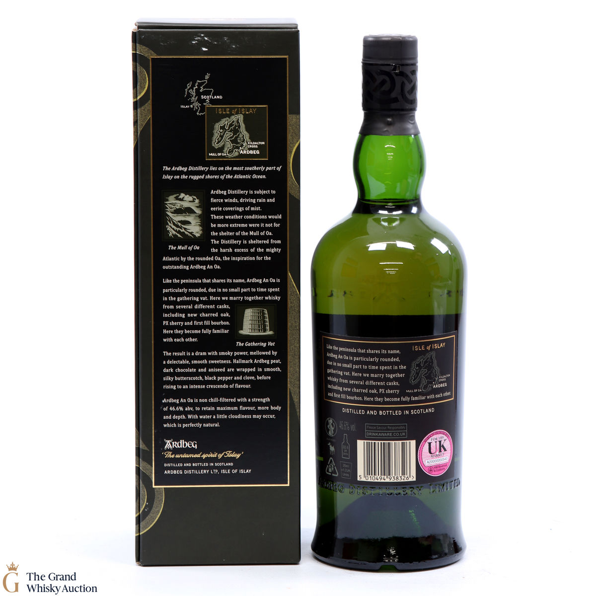 'An Oa' was the first addition to Ardbeg's core range for a decade when introduced in 2017. It is made up from a combination of spirit aged in Pedro-Ximenez sherry casks and bourbon barrels. Married in a French-oak marrying vat, this is rounded and smoky with notes of toffee, aniseed, date and banana.