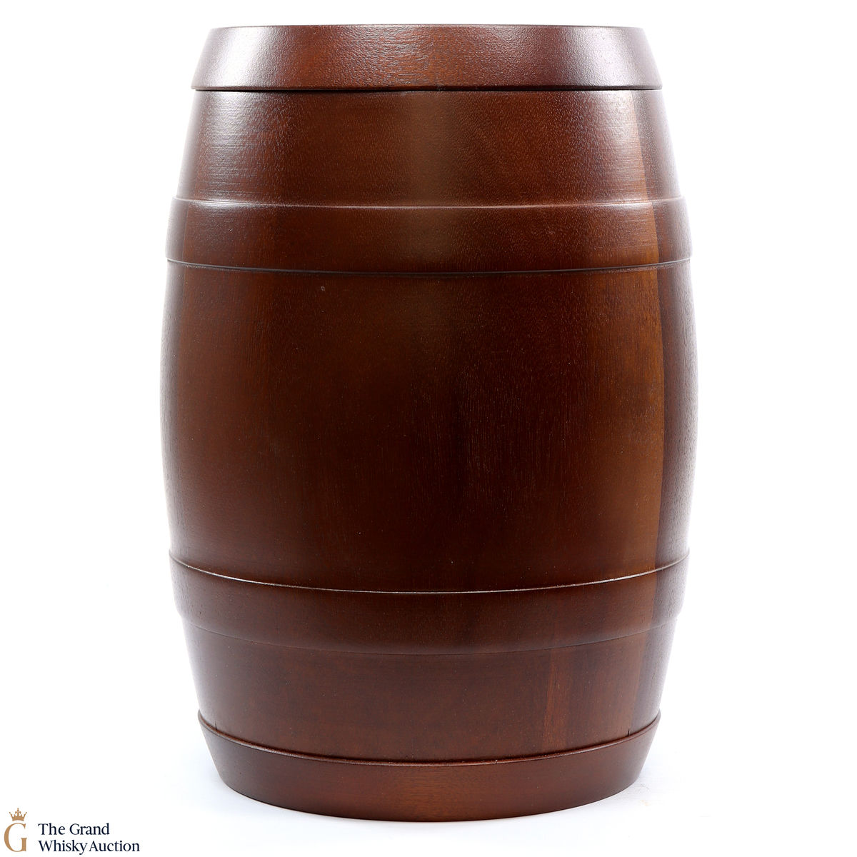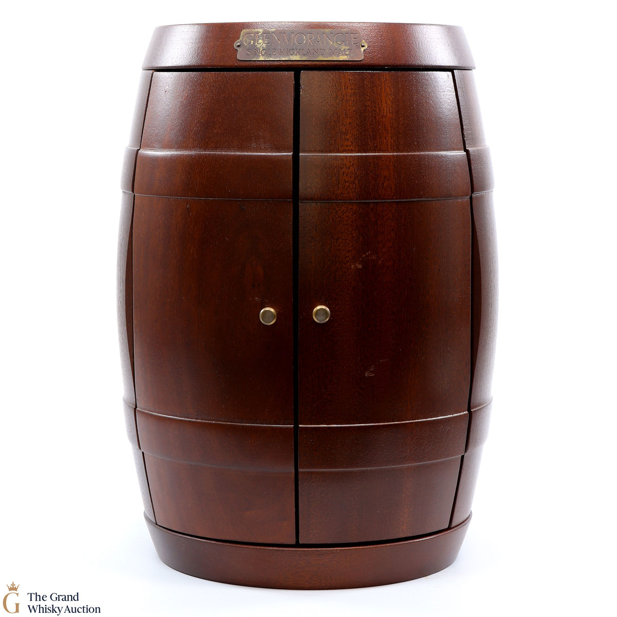 A unique lot from the Glenmorangie Distillery in the Highlands of Scotland, this barrel contains small wooden replicas of tools, as well as a mirrored background with the signatures and names of all the Distillery workers, etches onto the glass.