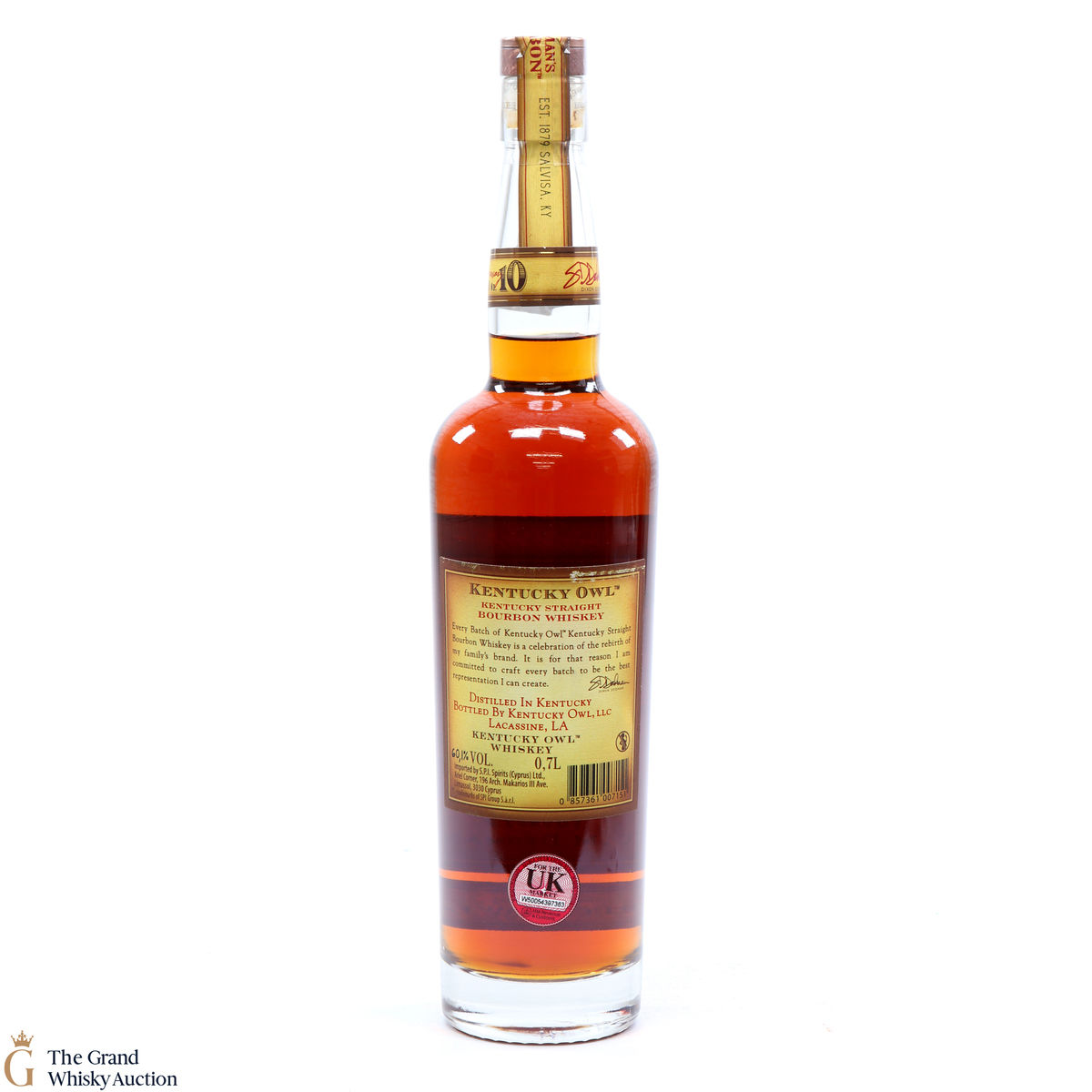 Every bottle of the Kentucky Owl Straight Bourbon is a celebration of the rebirth of Dixon Dedman's family brand. This is batch number 10 of the release which is limited to 14030 bottles.