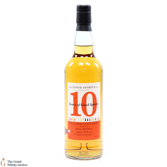 Bottled to celebrate 10 Years of The Good Spirits Company based in Glasgow. This single grain whisky was distilled at Girvan and matured for 30 years.