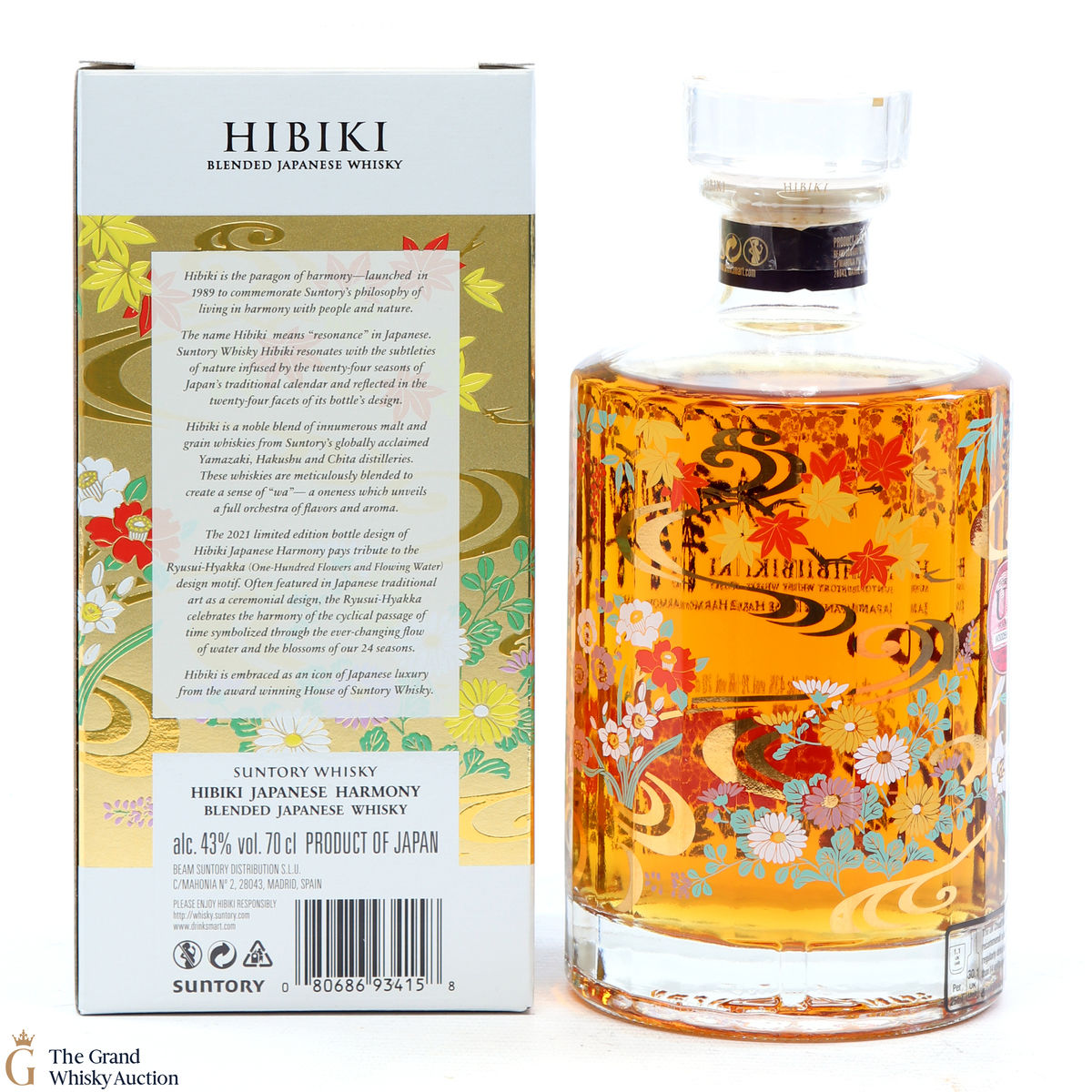 This is a limited edition, specially designed bottle with painted flowers and flowing ribbons of water. The 2021 special edition pays homage to the Ryisui-Hyakka (One Hundred Flowers and Flowing Water) and celebrates different seasonal flowers which help characterise the Japanese seasons. 5 types of casks were used and in typical Hibiki fashion, the bottle always has 24 facets which represent 24 seasons in the Japanese lunar calendar.