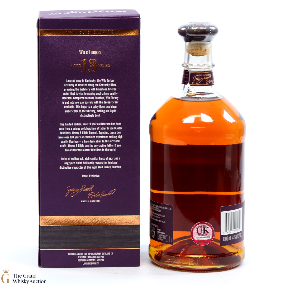 Distilled at the Wild Turkey Distillery in Kentucky USA by Father and Son Master Distillers Jimmy and Eddie Russel, this bourbon whiskey was produced as a travel retail exclusive.