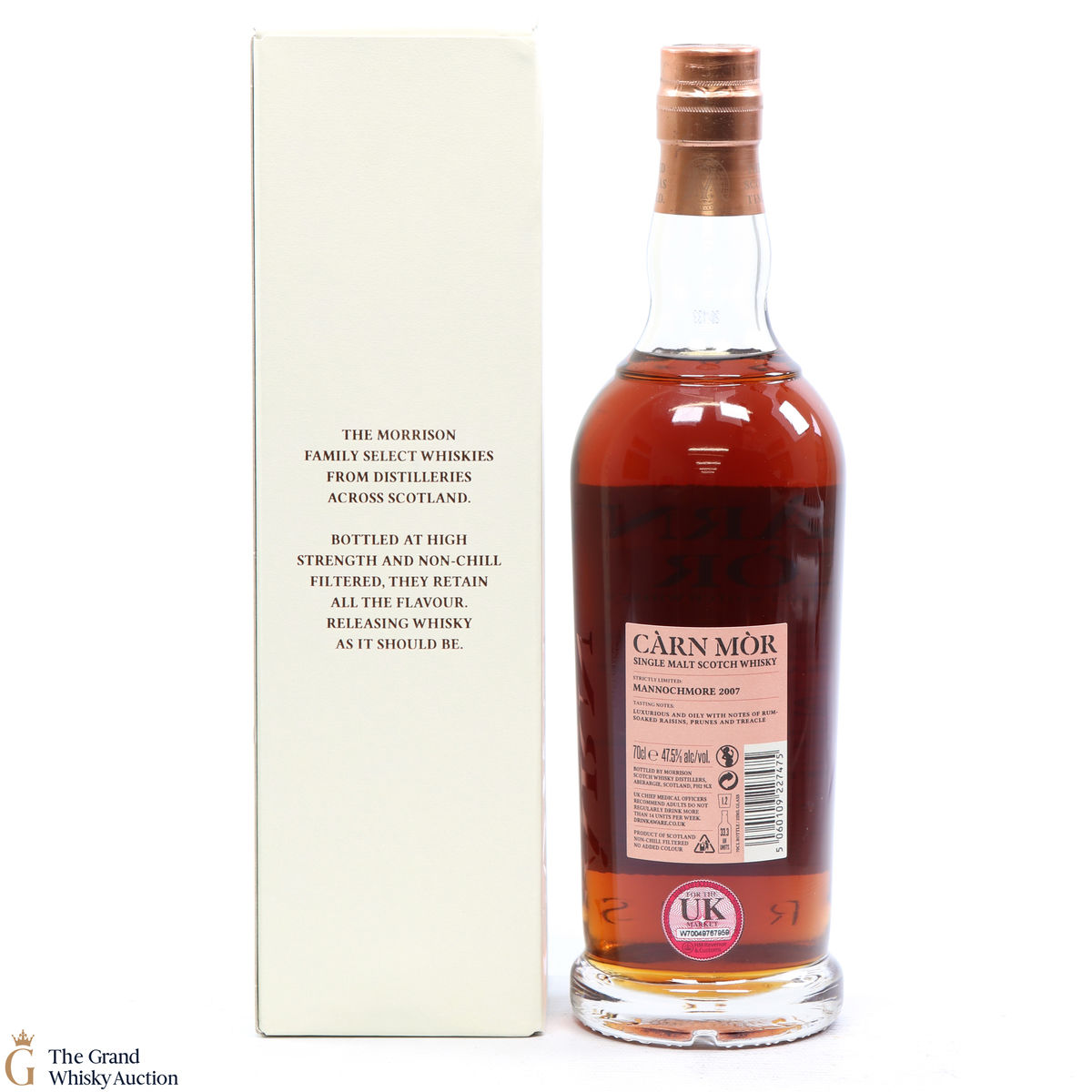 This 2007 Mannochmore was aged in PX Sherry Hogsheads and was bottled by Càrn Mòr in 2020. This is one of 1551 bottles presented at 47.5% ABV.