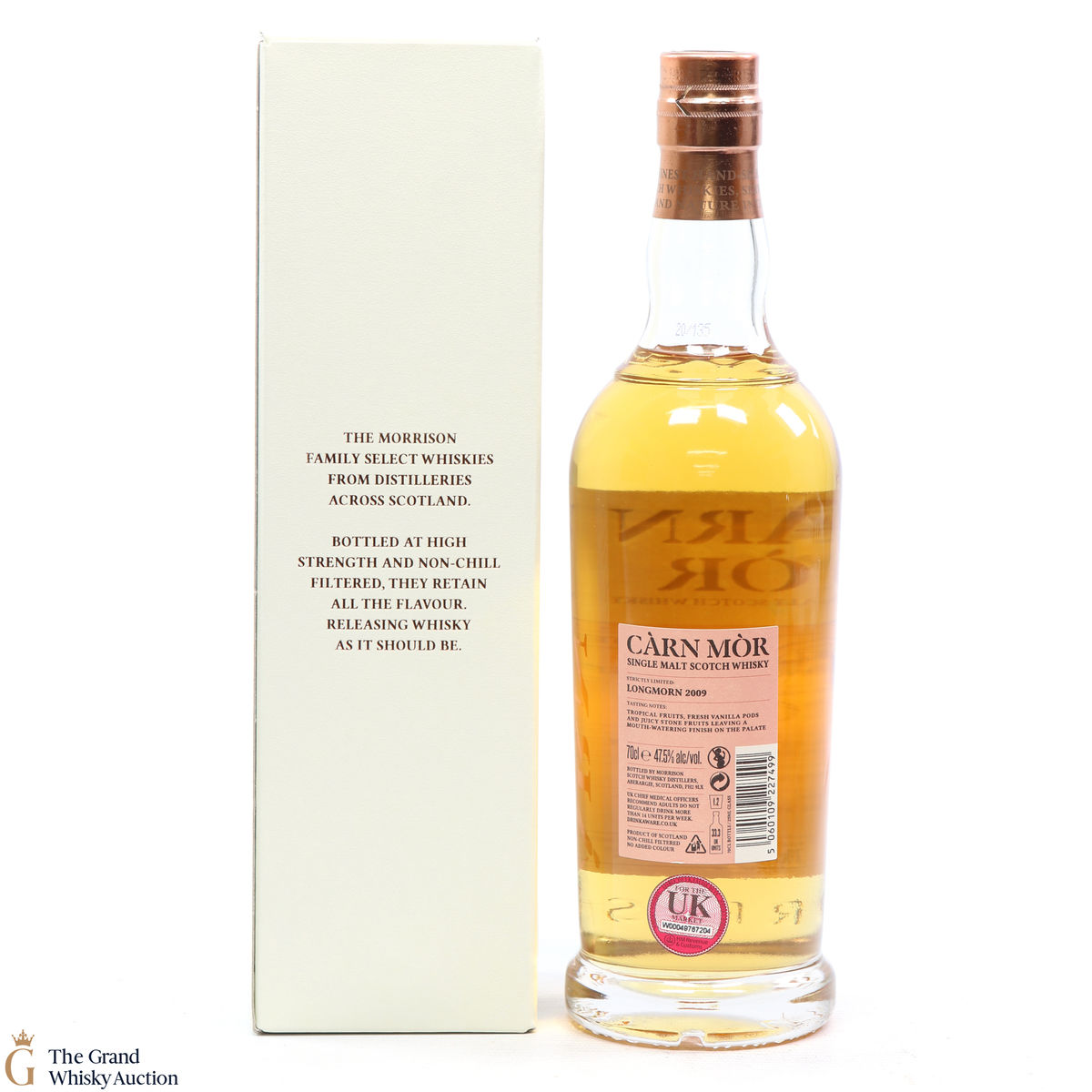 A single malt distilled in 2009 at Longmorn, matured for 11 years in first-fill bourbon barrels. This is one of 830 bottles filled for the Carn Mor Strictly Limited series.