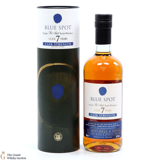 A collaboration from Irish Distillers and Mitchells & Sons, this Blue Spot 7-Year-Old Cask Strength marks the revival of the Blue Spot - it has been 56 years since the last recorded bottling of the old Blue Spot in 1964. This Blue Spot contains whiskey aged in carefully selected Madiera casks.
