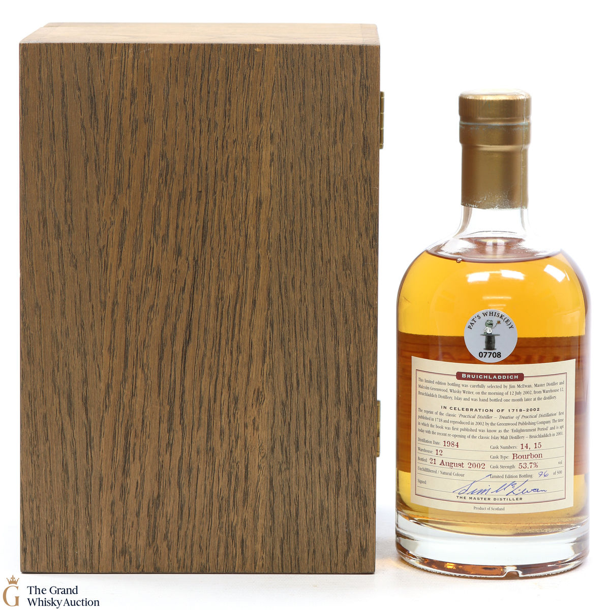 This beautifully presented 1984 Bruichladdich was matured in Bourbon Casks #14 & #15 and bottled 18 years later on the 21st of August 2002. This limited edition was produced in celebration of the reprint of the 'Practical Distiller' first published in 1718 and reproduced in 2002. This presentation includes a copy of the latter edition. This is one of only 500 bottles produced.