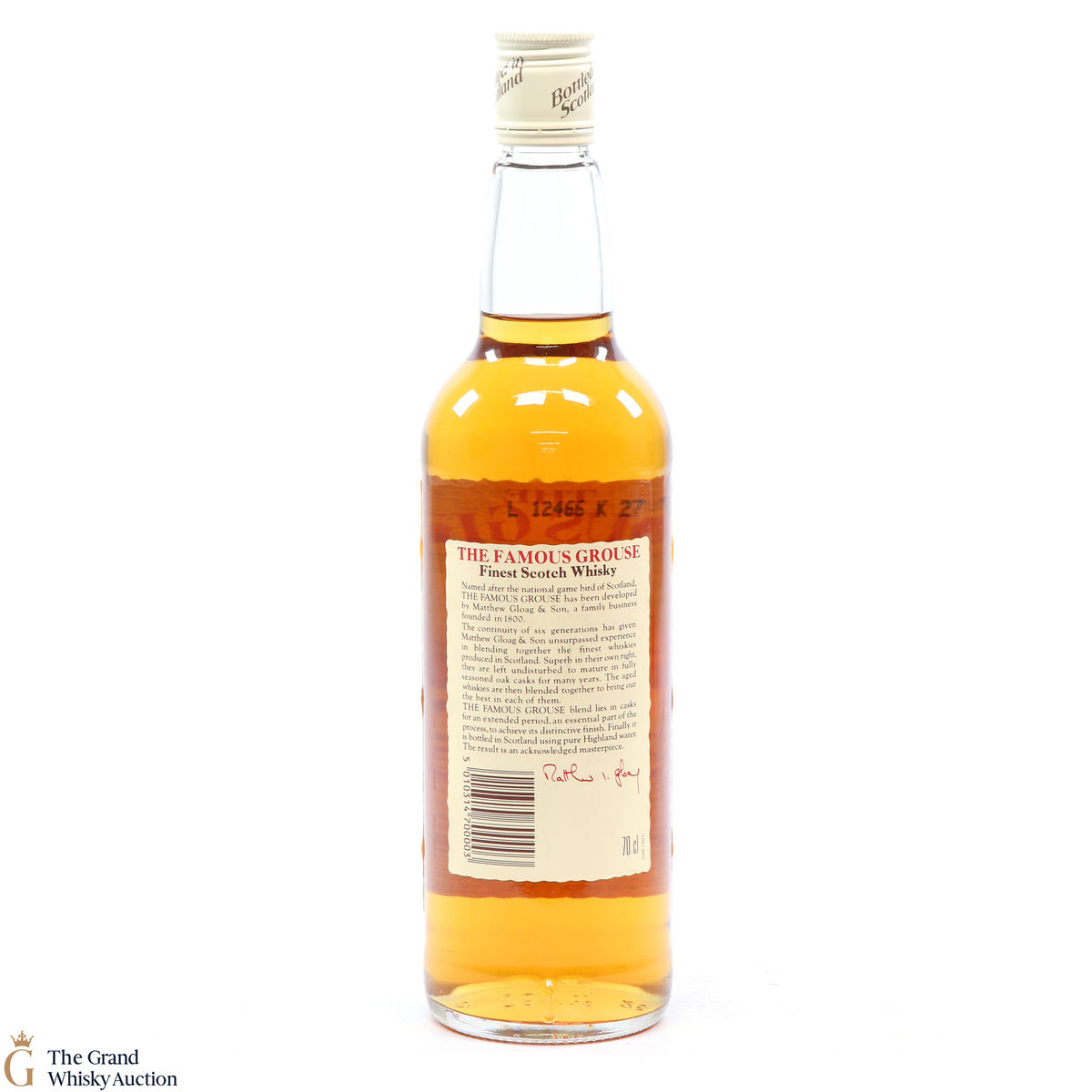 Famous Grouse blended scotch whisky was first produced by Matthew Gloag & Son Ltd in 1896, and is currently produced and owned by The Edrington Group.