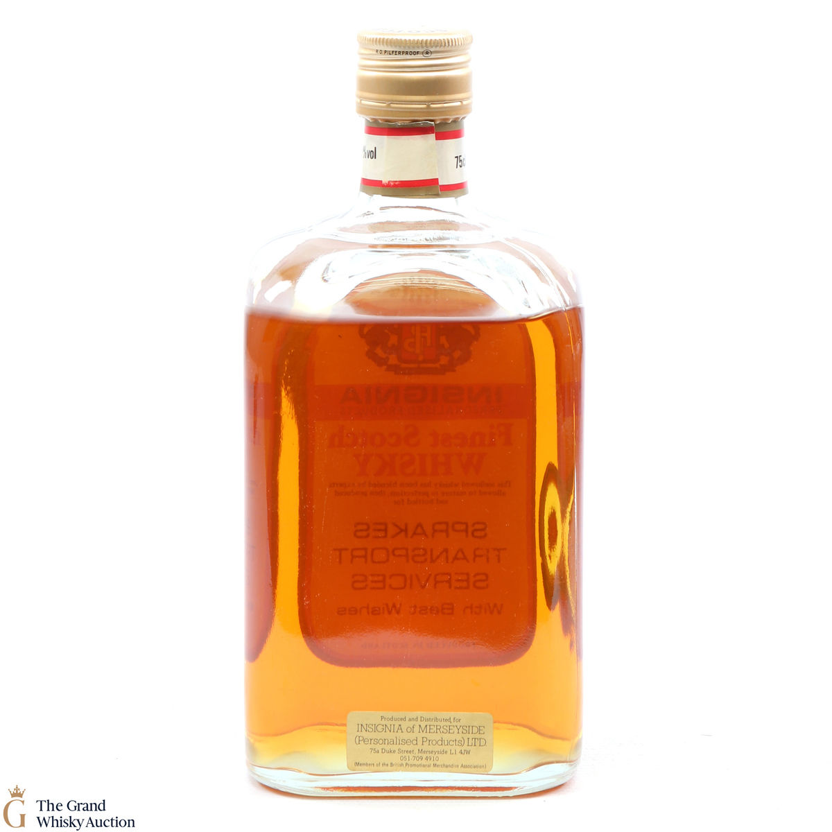 Due to the various ages of bottles and their seals, the condition of liquid is at the buyer's discretion and no claim can be lodged against failure/leakage in transit. Loss and breakage cover is available at 3% of the hammer price as standard. If the lot is not insured, no claim can be lodged against the courier or The Grand Whisky Auction for breakage or loss in transit.