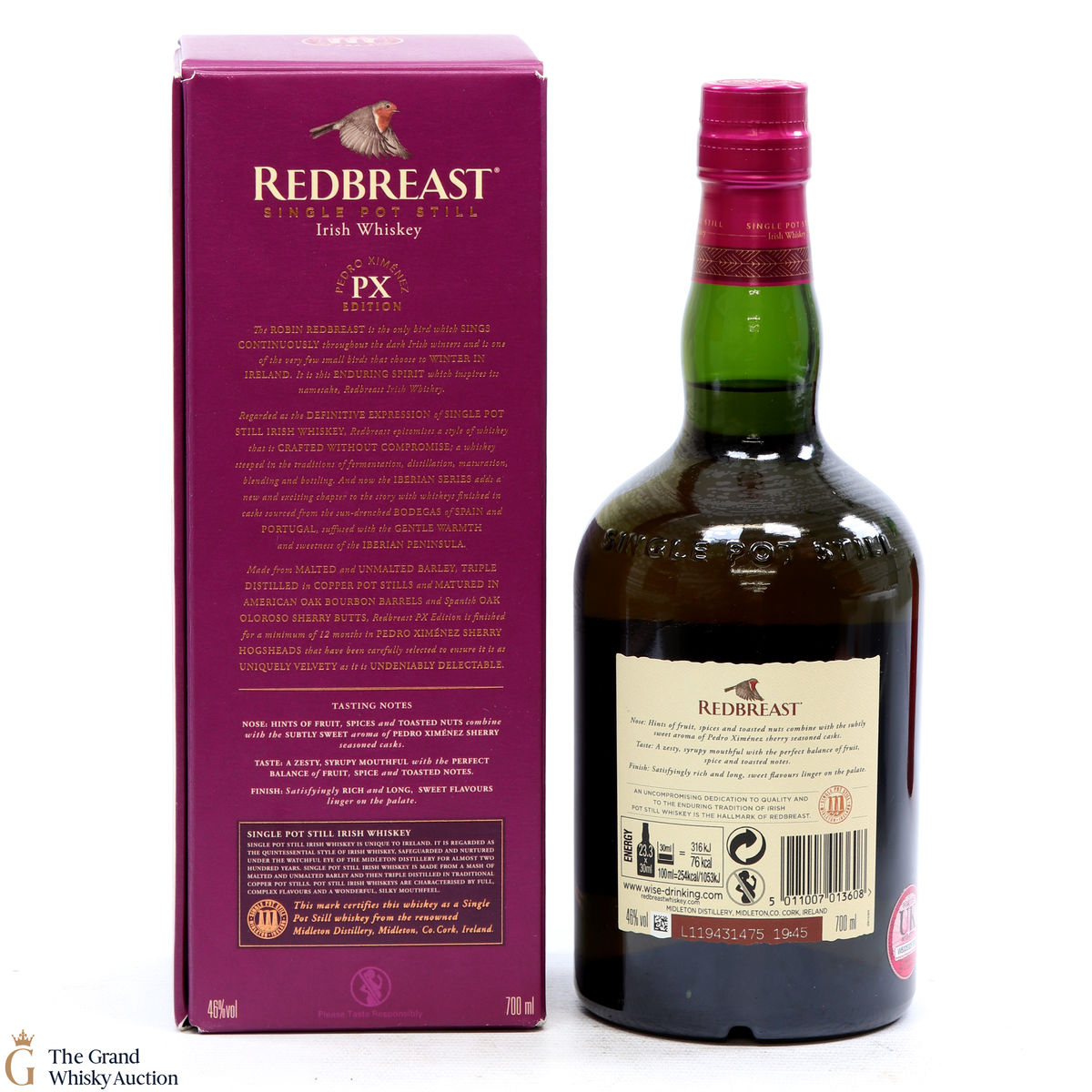 Released as part of the Iberian Series, inspired by Redbreast's connection to some of the top cooperages and winemakers from the Iberian Peninsula. Triple distilled and initially aged in bourbon and Oloroso sherry casks, then in Pedro Ximénez casks to finish for at least 12 months.
