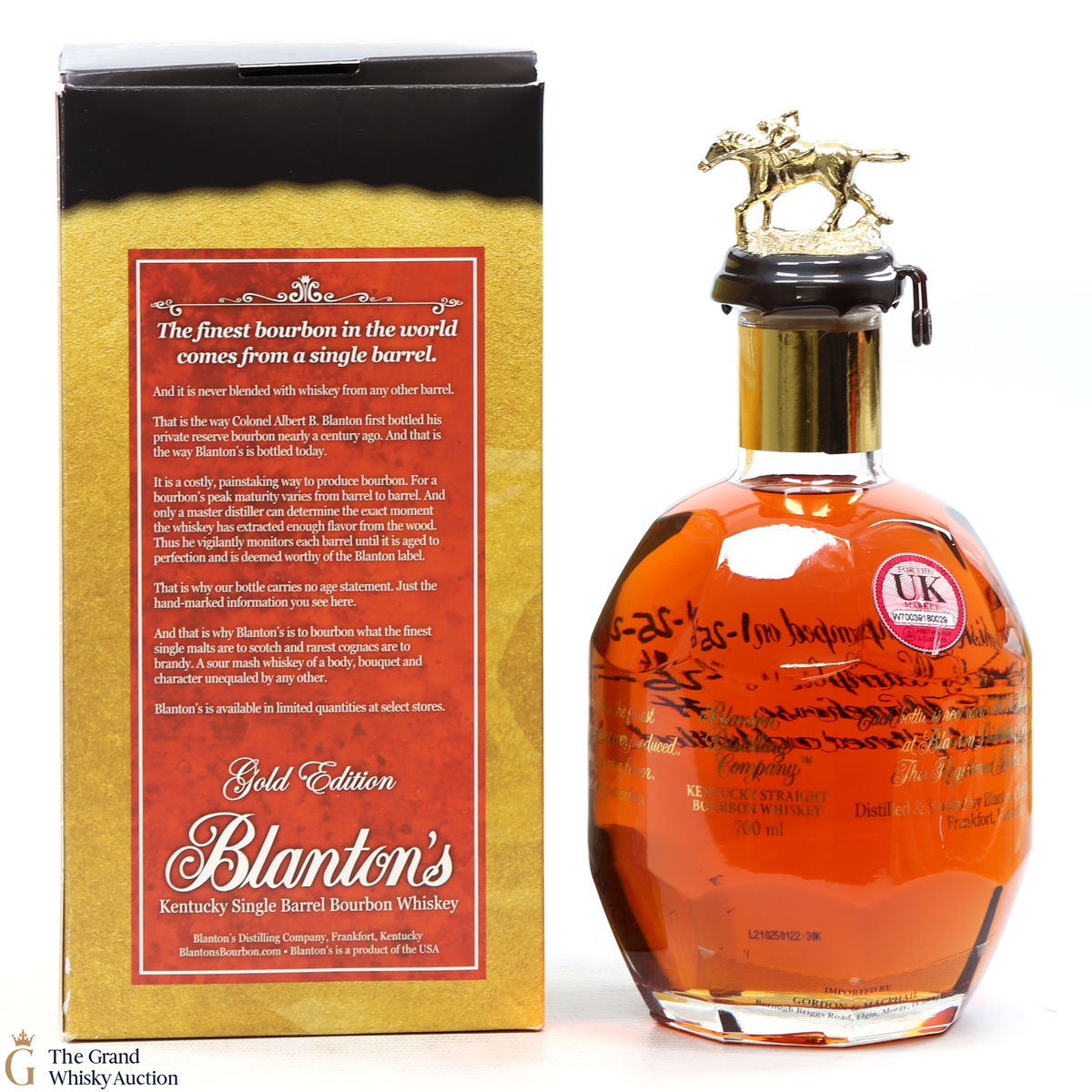 Due to the various ages of bottles and their seals, the condition of liquid is at the buyer's discretion and no claim can be lodged against failure/leakage in transit. Loss and breakage cover is available at 3% of the hammer price as standard. If the lot is not insured, no claim can be lodged against the courier or The Grand Whisky Auction for breakage or loss in transit.