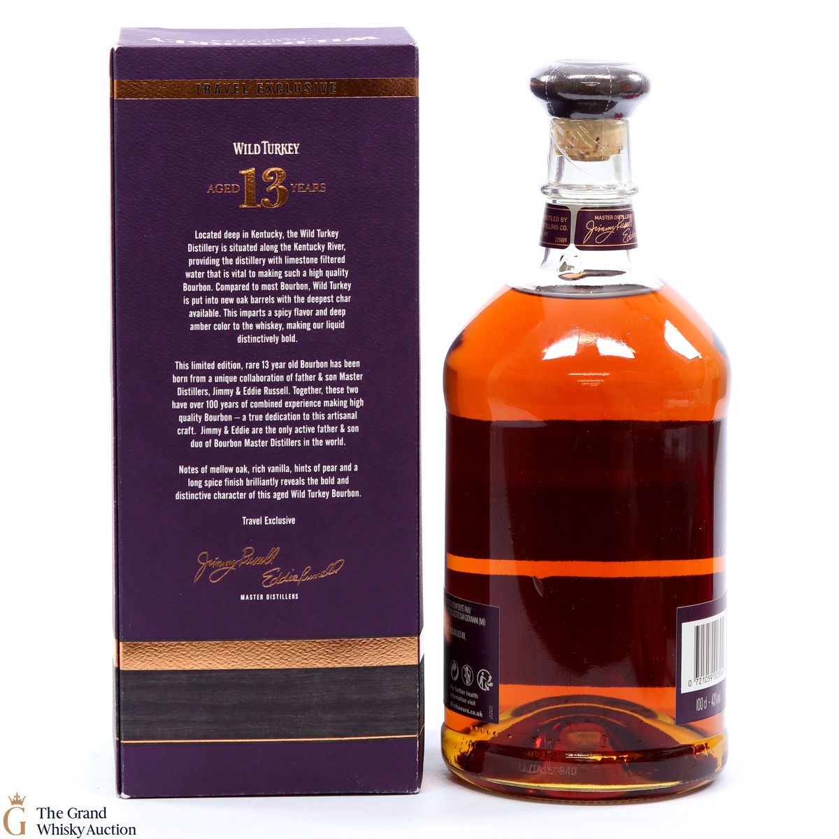Distilled at the Wild Turkey Distillery in Kentucky USA by Father and Son Master Distillers Jimmy and Eddie Russel, this bourbon whiskey was produced as a travel retail exclusive.