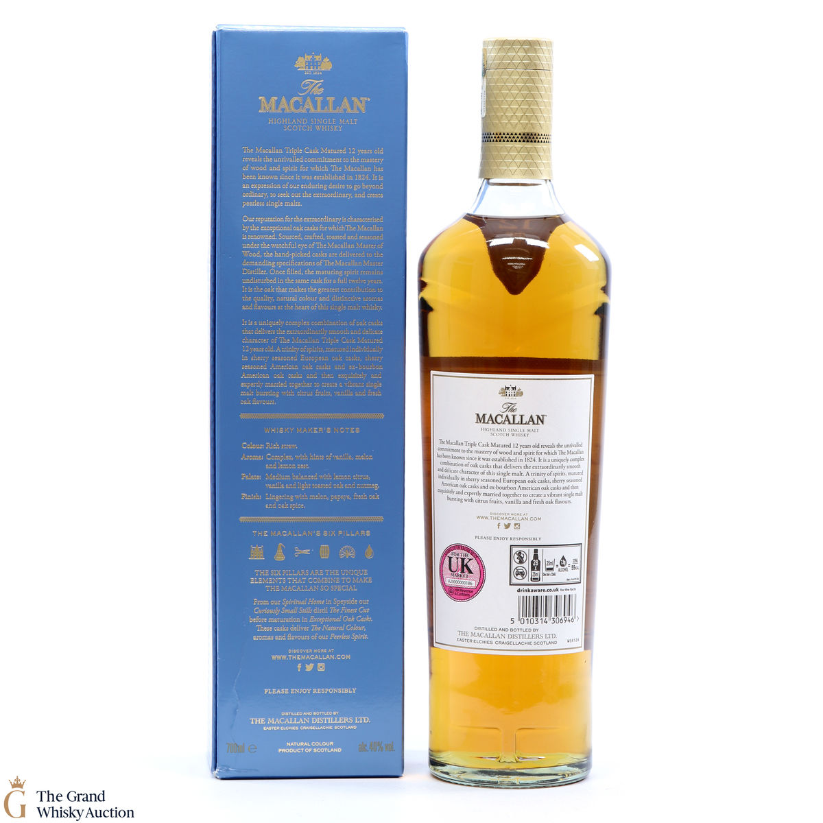 The 12 year old single malt was matured for 12 years and drawn from a combination of European sherry seasoned casks, American sherry seasoned casks and American ex-bourbon casks. It is part of Macallan's Triple Cask range which was launched in 2018, taking the place of the Fine Oak range.