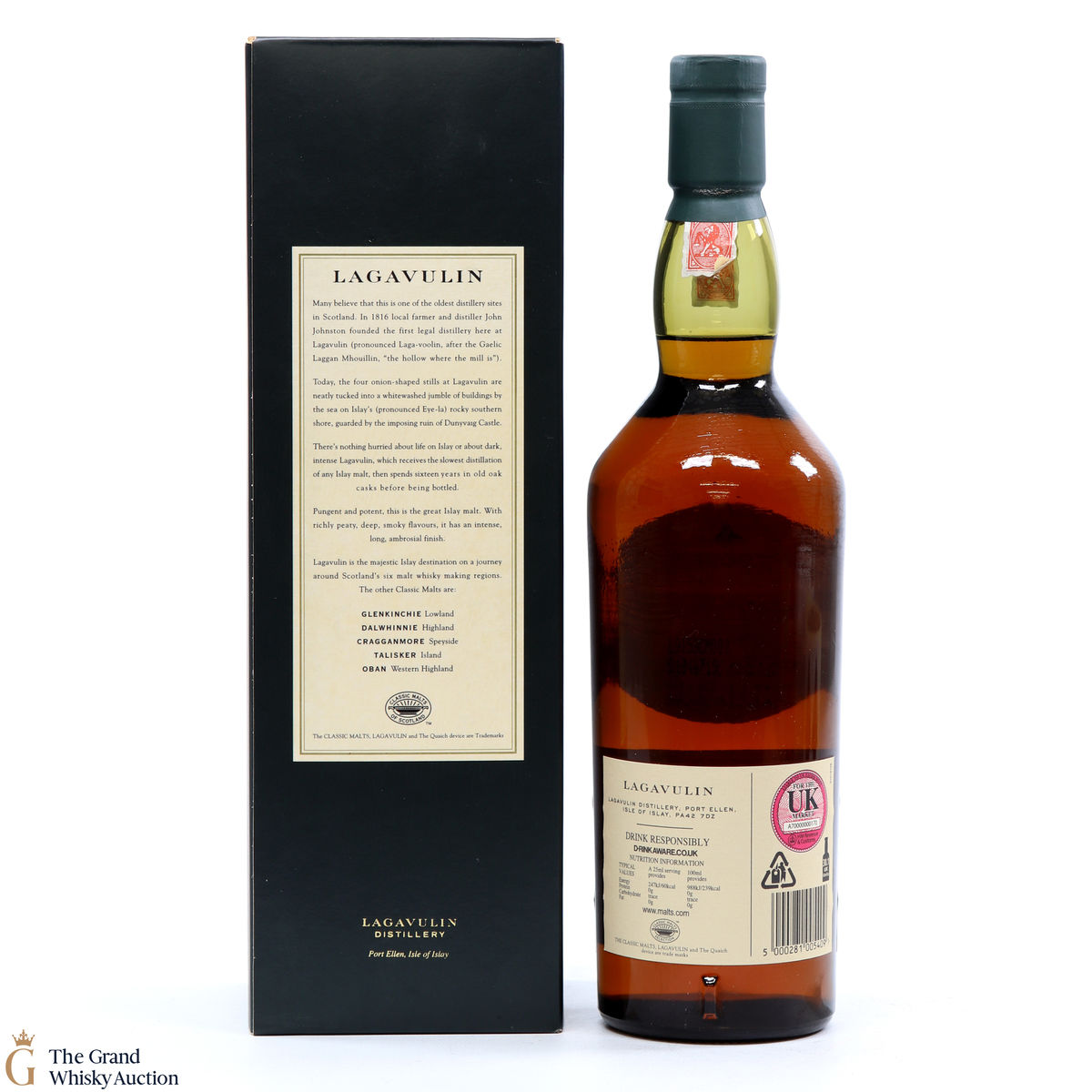 This is a popular and much sought-after single malt with the massive peat-smoke that's typical of southern Islay - but also offering richness and a dryness that turns it into a truly interesting tipple. The 16 year old, aged in oak casks has truly become a benchmark Islay dram from the Lagavulin distillery.