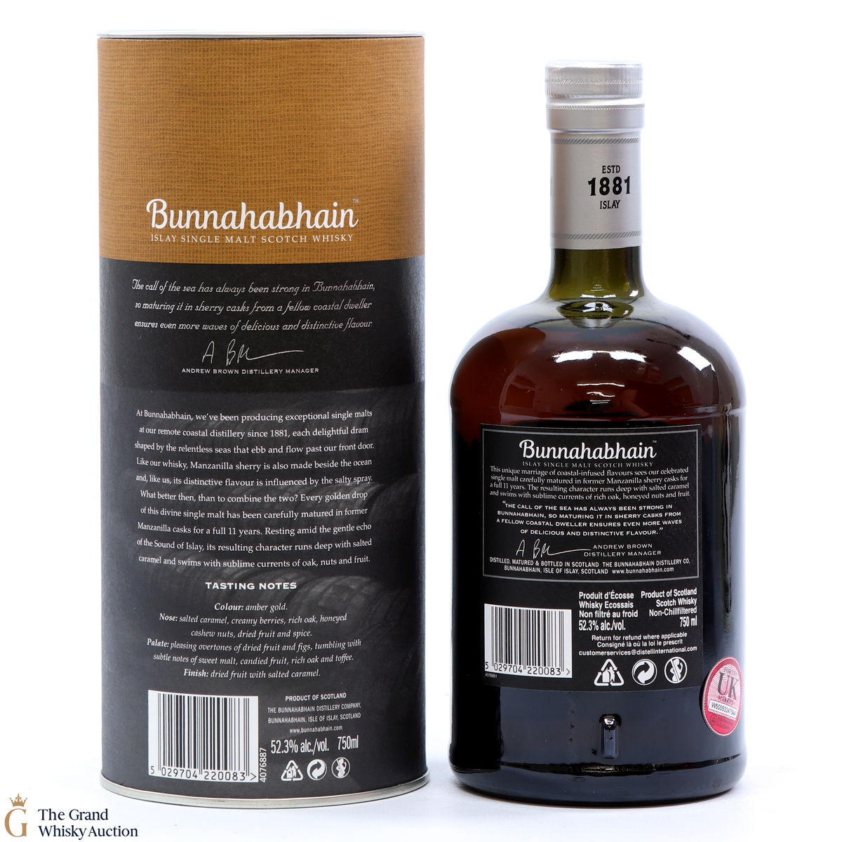 This limited release from Bunnahabhain and is a 2008 vintage Manzanilla cask matured single malt. Bottled in May 2020 at 52.3%. This 11-Year-Old, matured in warehouse 9 has rich flavours of nuts, fruits and toffee, with a salted caramel finish.