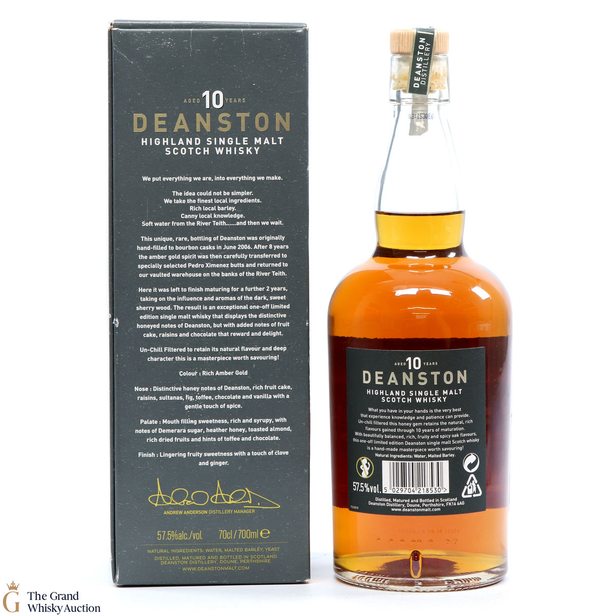 This Deanston 10 Year Old was matured for 8 years in bourbon casks and finished in PX Butts for a further 2 years.
