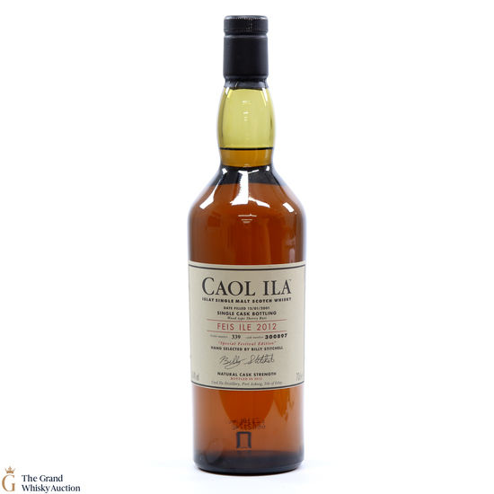 This single cask Caol Ila was distilled in 2001 and was fully matured in sherry butt #300897. It was bottled at the natural cask strength of 60.4% especially for Fèis Ìle 2012.