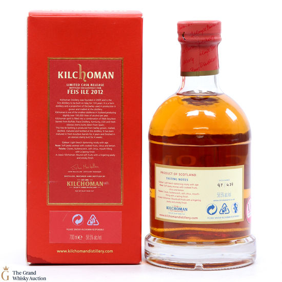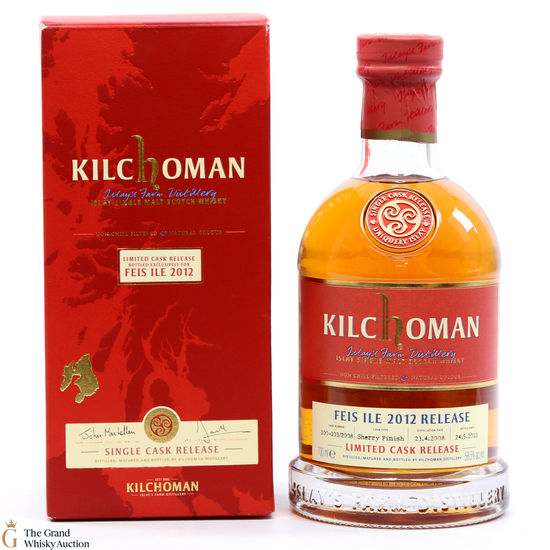 This was the Kilchoman Fèis Ìle 2012 release, which was sold exclusively at Kilchoman Distillery. It is a cask-strength sherry-finished single malt. This is one of only 439 bottles produced.