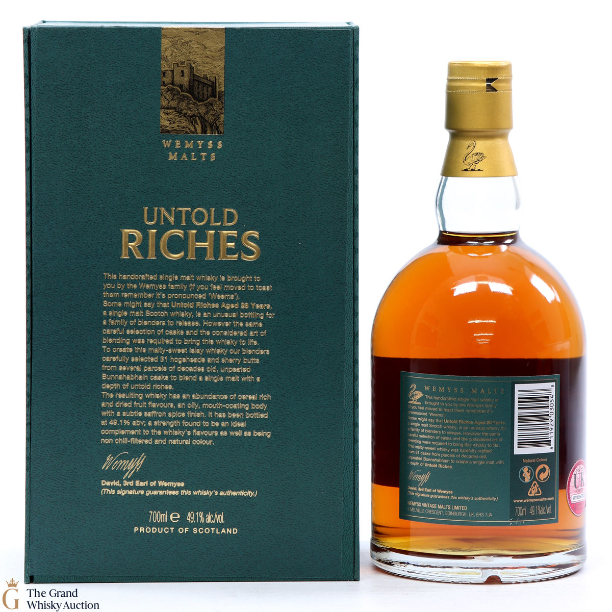 Due to the various ages of bottles and their seals, the condition of liquid is at the buyer's discretion and no claim can be lodged against failure/leakage in transit. Loss and breakage cover is available at 3% of the hammer price as standard. If the lot is not insured, no claim can be lodged against the courier or The Grand Whisky Auction for breakage or loss in transit.