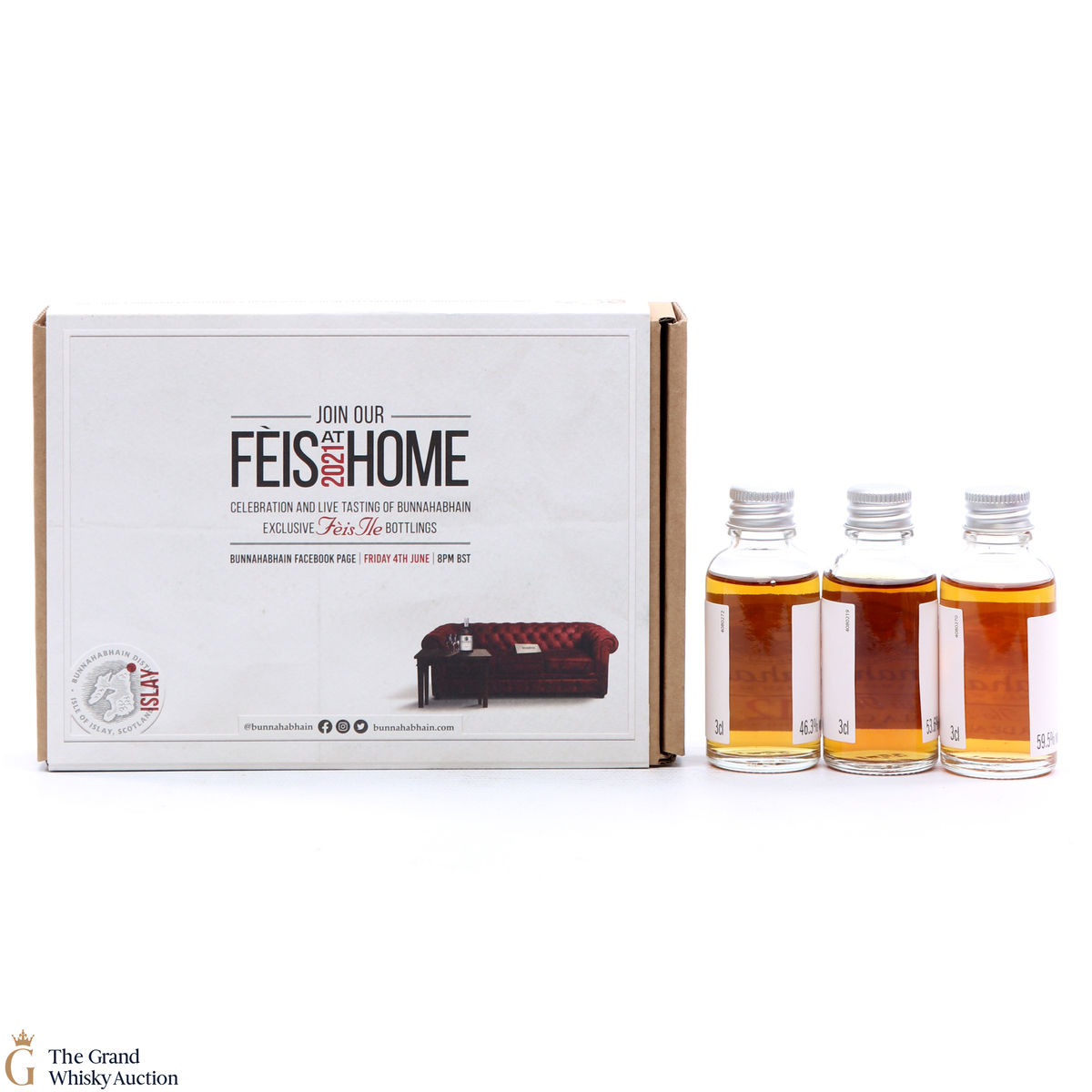 With Feis Ile 2021 being a virtual event this year, Bunnahabhain Distillery have released these tasting packs to celebrate Feis Ile at home which includes a Feis Ile 2021 pin badge and 3 x 3cl samples: