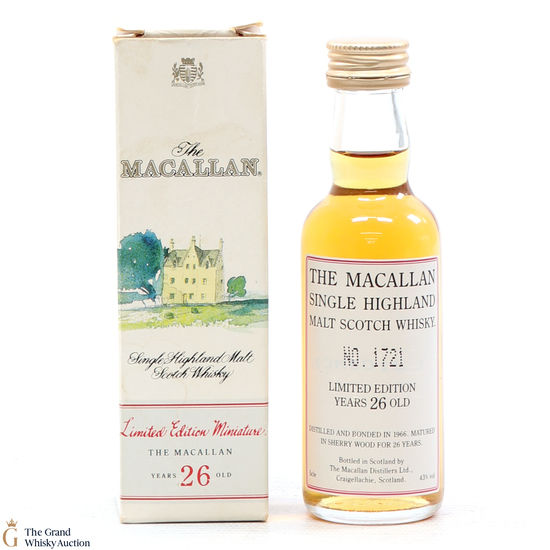 Matured in sherry wood for 26 years comes this 5cl miniature of Macallan.