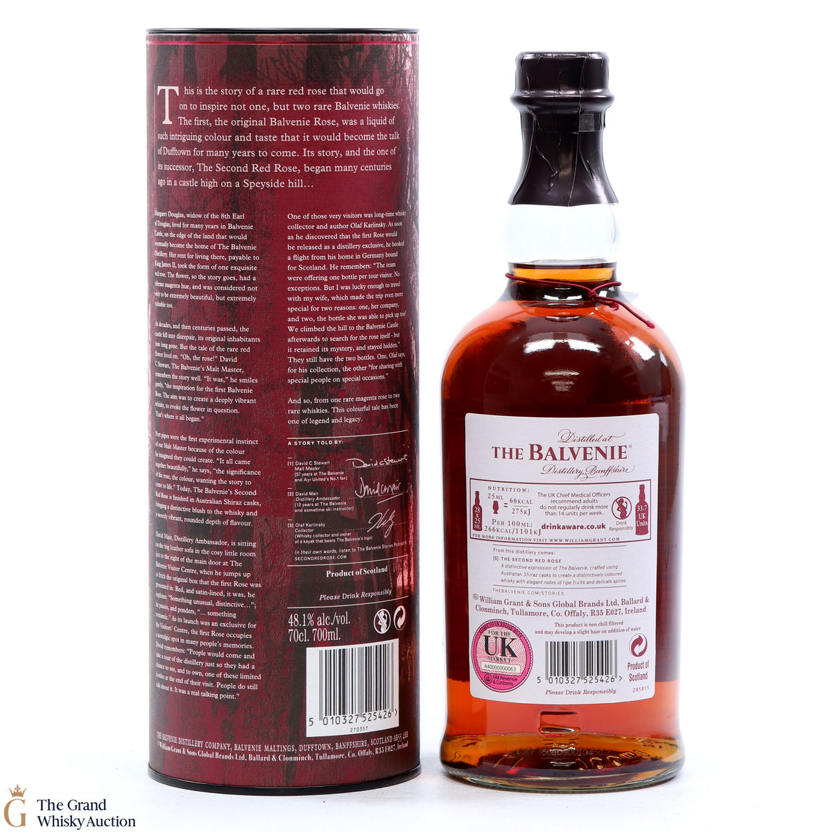 Inspired by the history of Balvenie Castle, this single malt was matured for a total of 21 years, being finished in Australian Shiraz Casks. The story of David C Stewart has created two extraordinary red roses, this is the second red rose and story number 5 in the series. Bottled at 48.1% ABV.