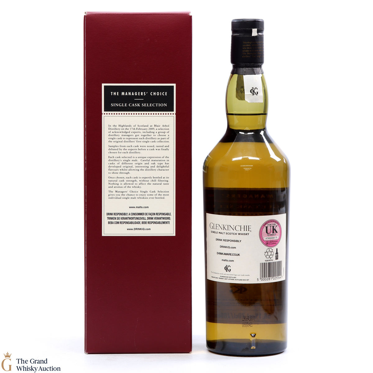 Due to the various ages of bottles and their seals, the condition of liquid is at the buyer's discretion and no claim can be lodged against failure/leakage in transit. Loss and breakage cover is available at 3% of the hammer price as standard. If the lot is not insured, no claim can be lodged against the courier or The Grand Whisky Auction for breakage or loss in transit.