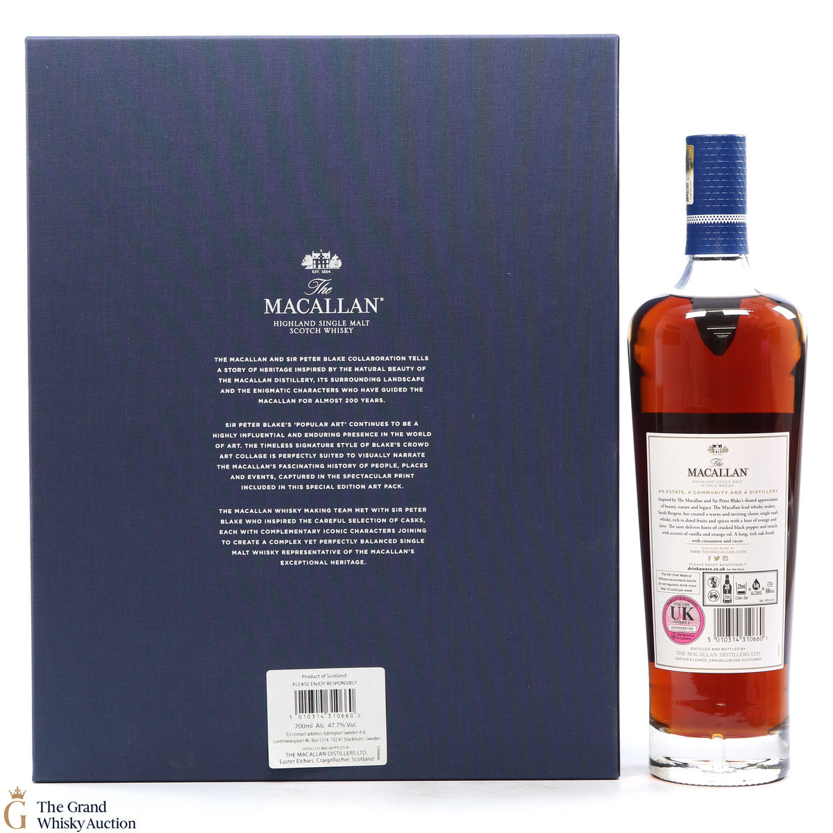Part of The Anecdotes of Ages Collection, this is an extraordinary art and whisky collaboration with Sir Peter Blake. Being the third collaboration between the Macallan Distillery and Sir Peter Blake, this single malt was created to commemorate Sir Peter Blake's visit to The Macallan Estate. An Estate, a Community and a Distillery tells the story of some of the colourful characters from the distilleries past and present and features a label designed by Sir Peter Blake.