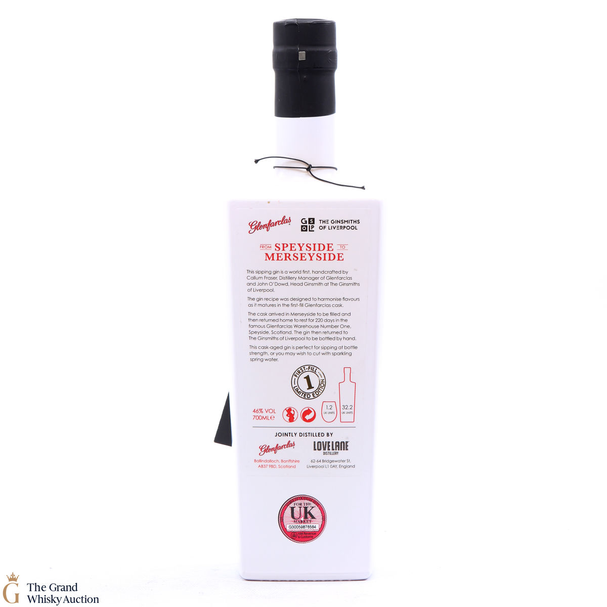 A cask-aged gin collaboration between The Ginsmiths of Liverpool & Glenfarclas. This limited edition gin was Matured in first fill Glenfarclas casks for 222 days. Only 460 bottles were released.