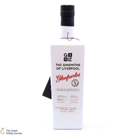 A cask-aged gin collaboration between The Ginsmiths of Liverpool & Glenfarclas. This limited edition gin was Matured in first fill Glenfarclas casks for 222 days. Only 460 bottles were released.