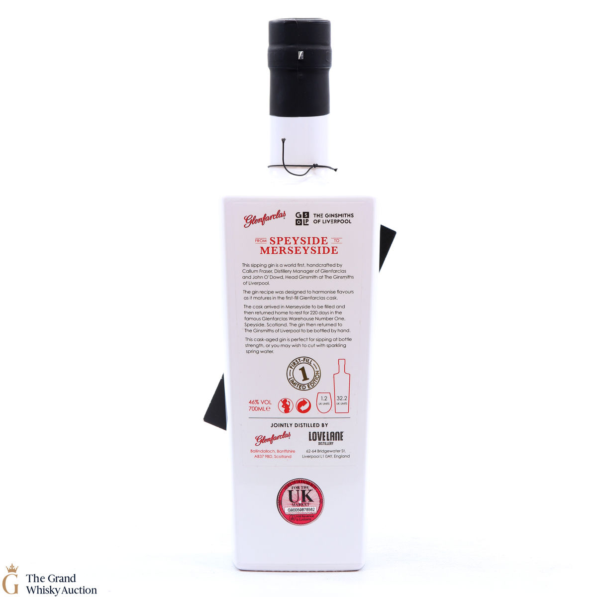 A cask-aged gin collaboration between The Ginsmiths of Liverpool & Glenfarclas. This limited edition gin was Matured in first fill Glenfarclas casks for 222 days. Only 460 bottles were released.