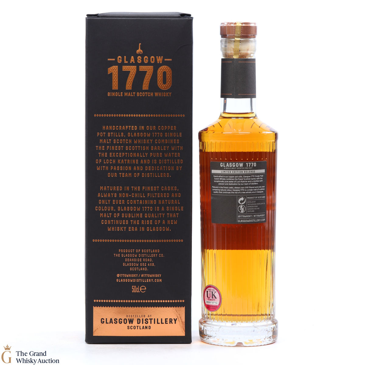 Due to the various ages of bottles and their seals, the condition of liquid is at the buyer's discretion and no claim can be lodged against failure/leakage in transit. Loss and breakage cover is available at 3% of the hammer price as standard. If the lot is not insured, no claim can be lodged against the courier or The Grand Whisky Auction for breakage or loss in transit.