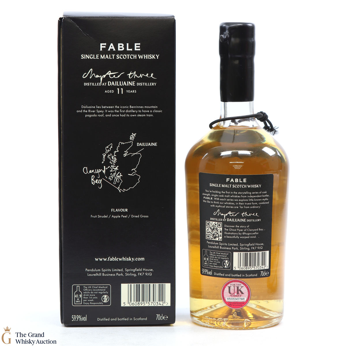 This second edition of Fable Chapter 3 is a Dailuaine 2010, bottled after 11 years in hogshead #308828. The Moon in the Ghost Piper of Clanyard Bay Fable is represented by Dailuaine distillery.