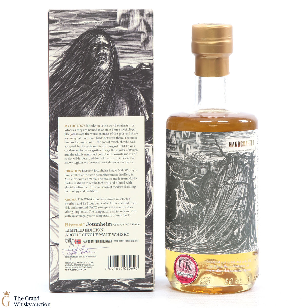 Bivrost Jotunheim is a single malt from the world's northernmost distillery! Produced using Nordic barley and matured in a combination of bourbon and ex stout casks.