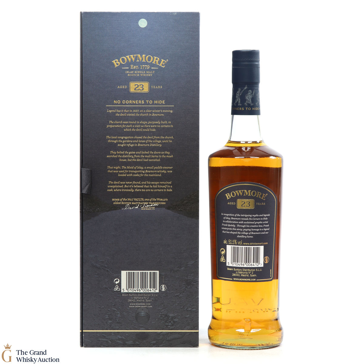 The limited release Bowmore No Corners to Hide 23 Year Old was matured for 21 years in ex-bourbon American oak hogsheads and finished for two years in Essencia barriques. Bottled at 51.5% ABV.