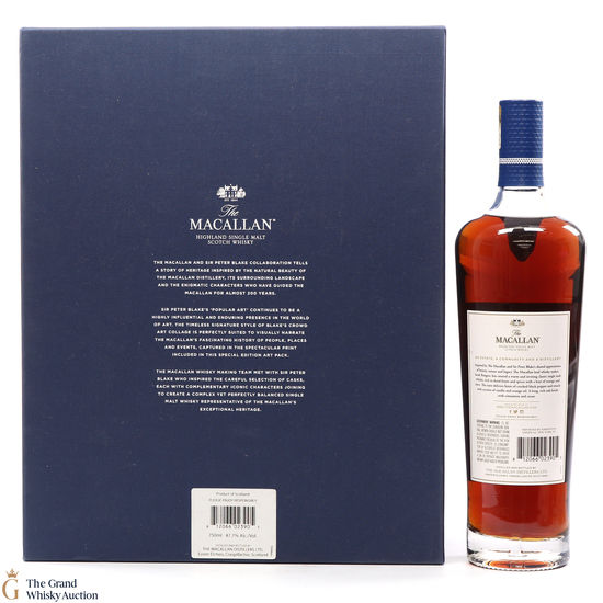 Part of The Anecdotes of Ages Collection, this is an extraordinary art and whisky collaboration with Sir Peter Blake. Being the third collaboration between the Macallan Distillery and Sir Peter Blake, this single malt was created to commemorate Sir Peter Blake's visit to The Macallan Estate. An Estate, a Community and a Distillery tells the story of some of the colourful characters from the distilleries past and present and features a label designed by Sir Peter Blake.