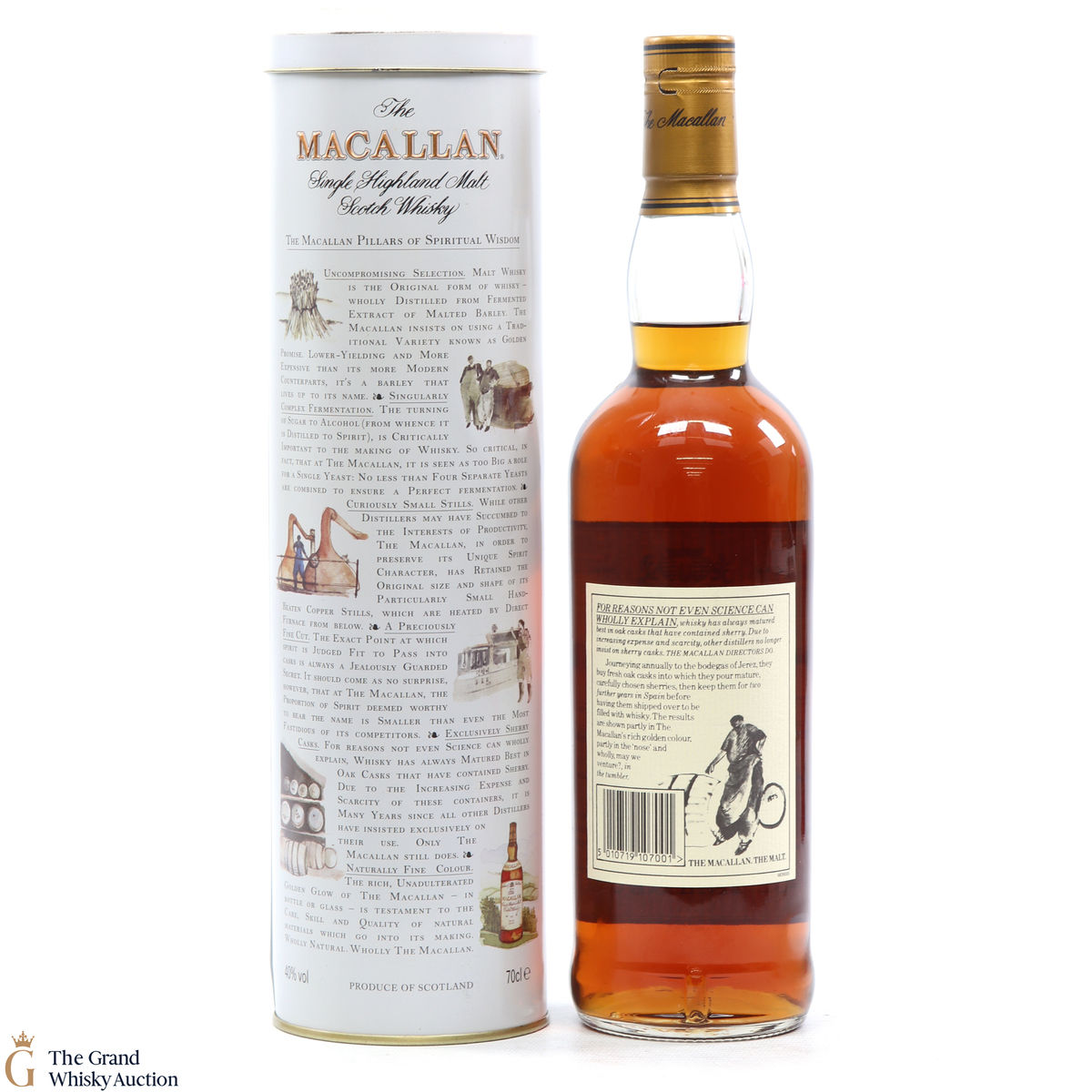 A 1990's bottling of 10 year old Macallan, matured in sherry wood with a presentation tin depicting Easter Elchies House.